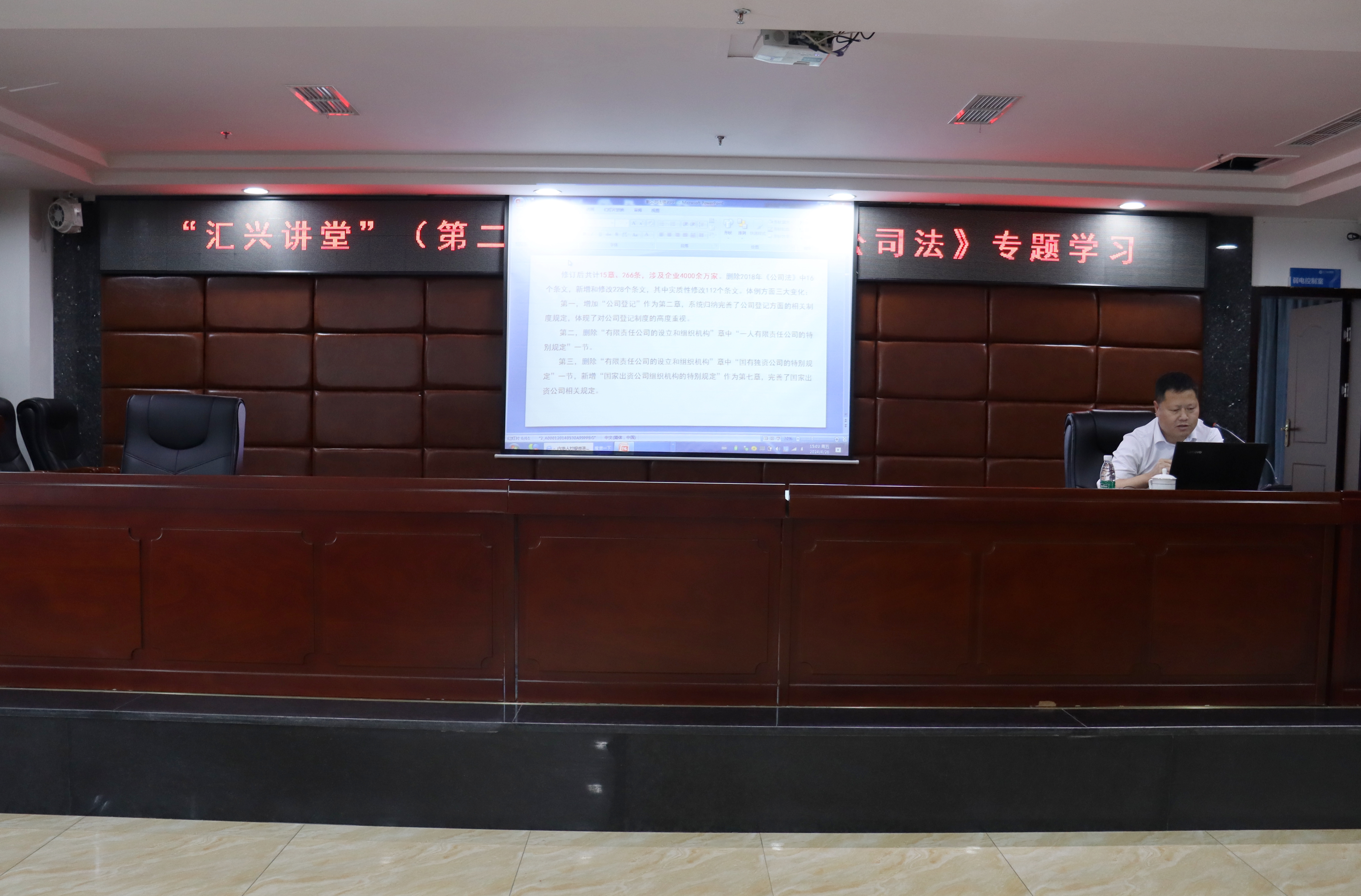 為深入推進(jìn)依法治企,4月26日,集團(tuán)公司在二樓會(huì)議室舉辦“匯興講堂”第二期培訓(xùn)班。此次培訓(xùn)以“新《公司法》專題培訓(xùn)”為主題,由集團(tuán)公司法務(wù)部、紀(jì)檢監(jiān)察審計(jì)部部長王華主講,總公司及各子公司70余人參加。