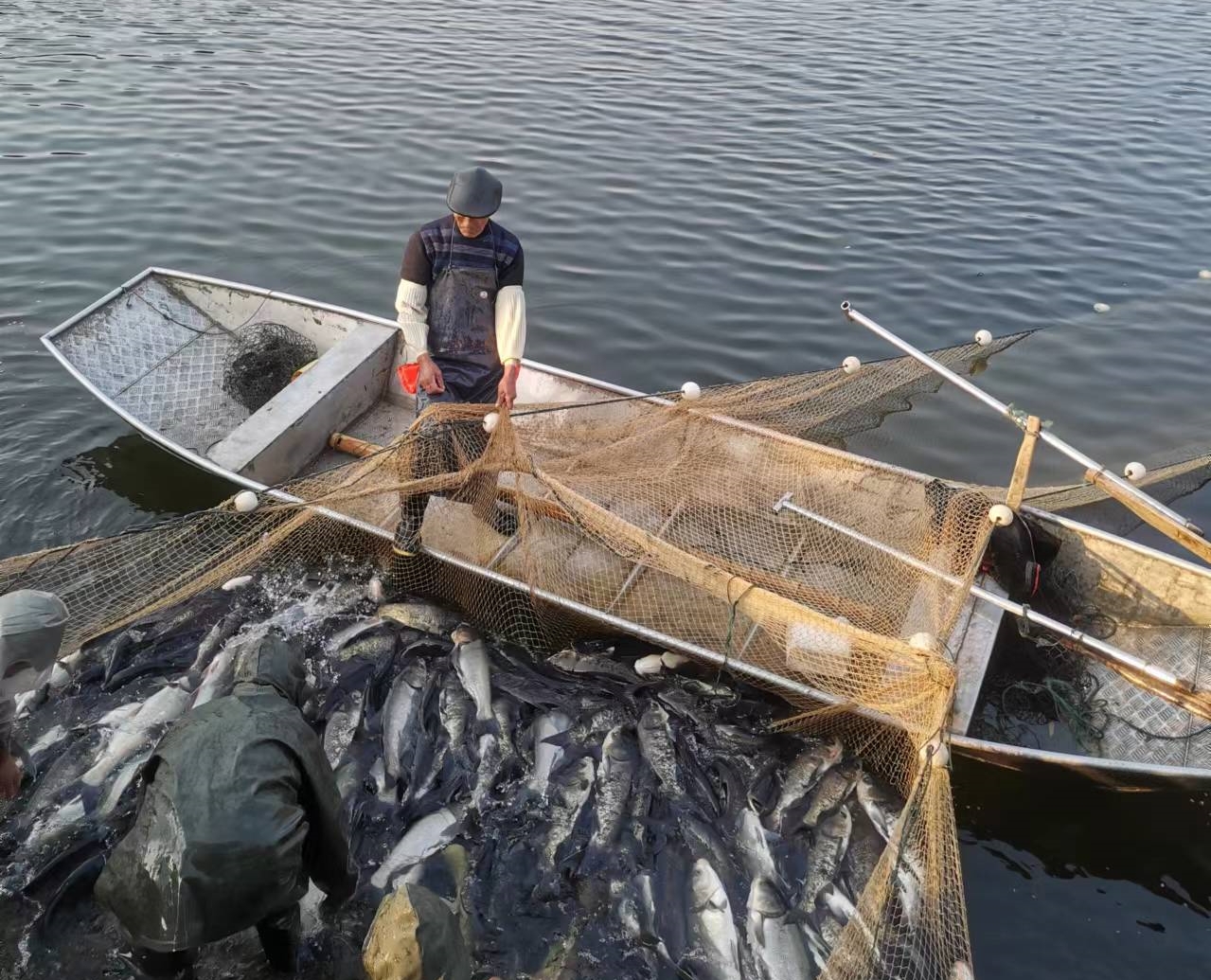 2月11日,水利電力公司在艾大橋水庫(kù)開(kāi)展新年第一批捕魚(yú)工作。